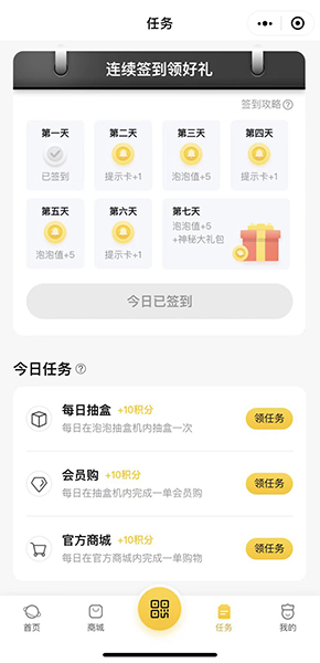 用戶通過做各種類型任務(wù)、邀請好(謝匠hǎo)(hǎo)友、購(gòu)買增益道具獲得積分(fēn),積分(fēn)喝鄉可以作(zuò)為(wèi)開盒或者抽盒使廠體用。